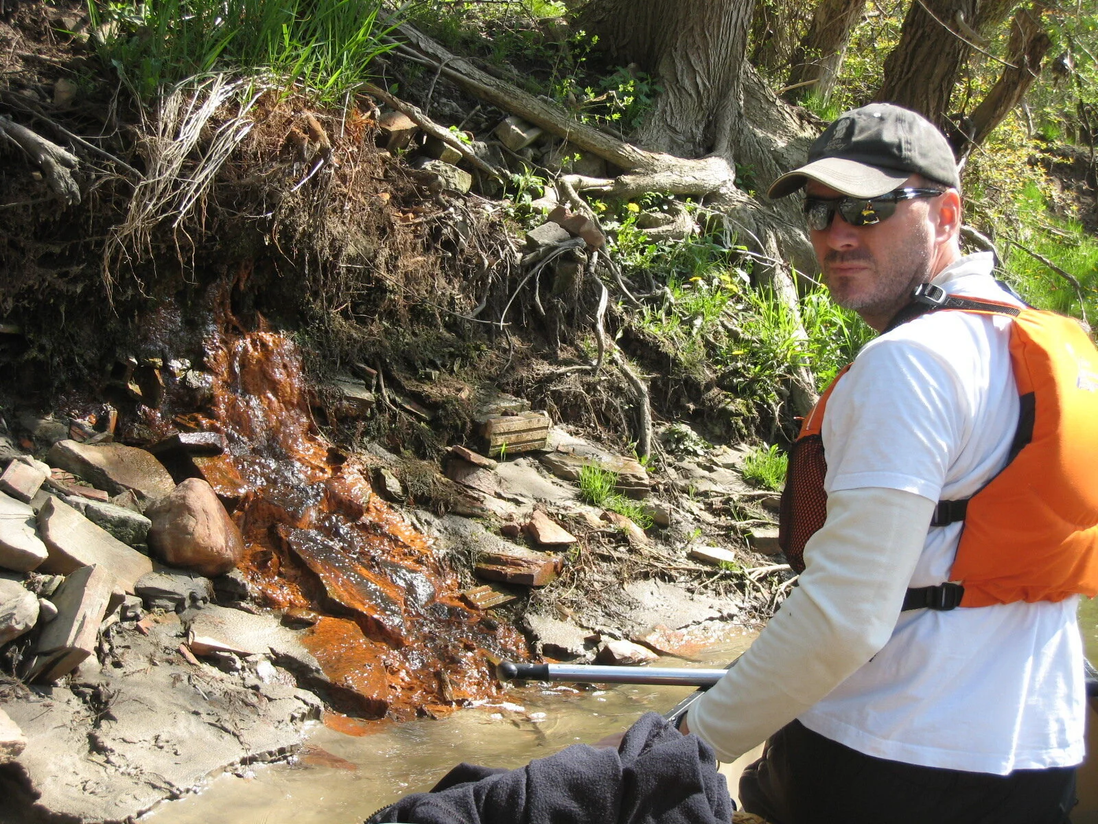 Mark Mattson investigates discharge into the Don River during the annual Paddle the Don event. (Photo credit: Julia Hambleton)