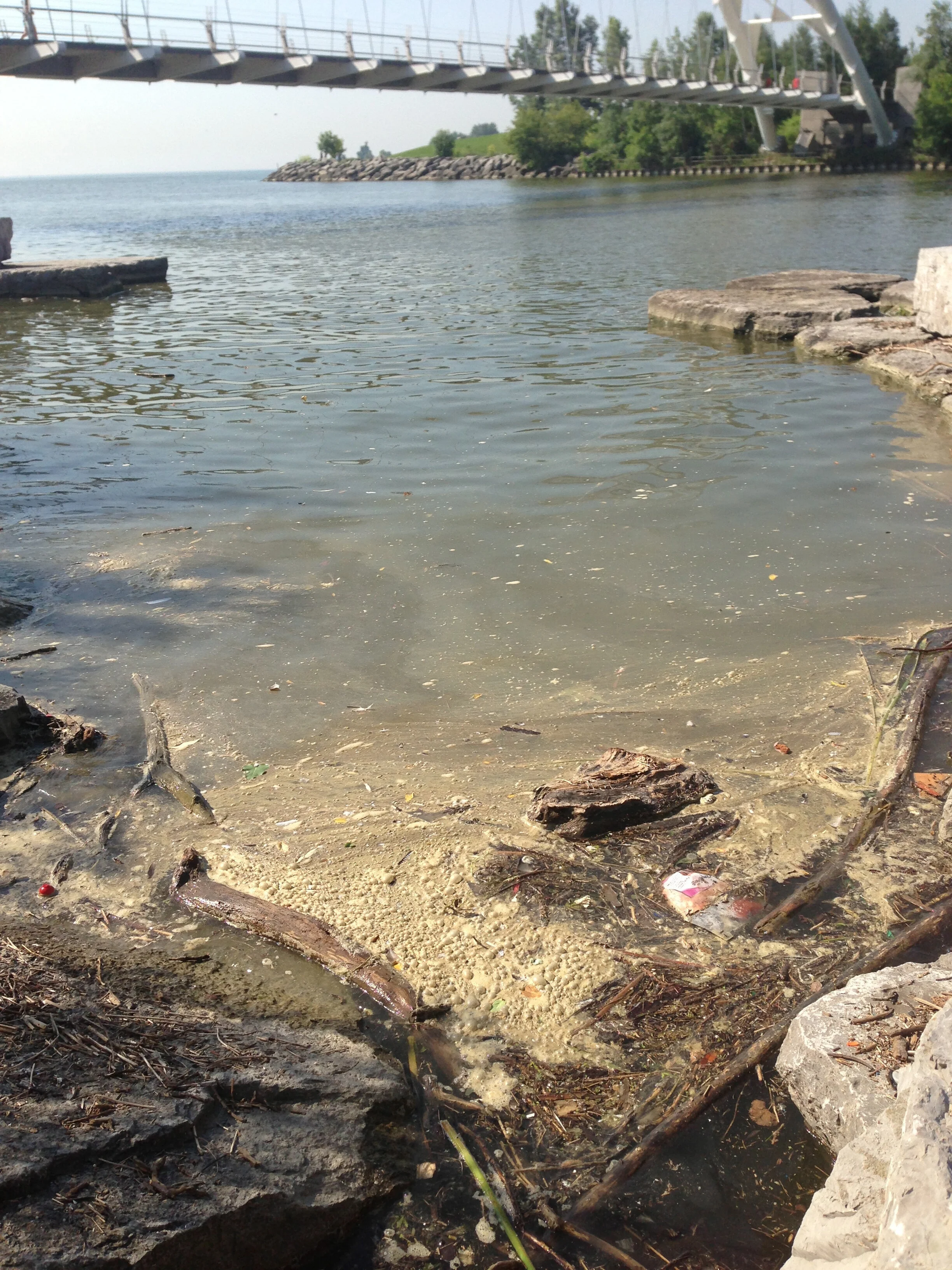 Pollution from the Toronto storm and Humber Wastewater Treatment Plant wash ashore, July 16, 2013. Photo by Lake Ontario Waterkeeper.