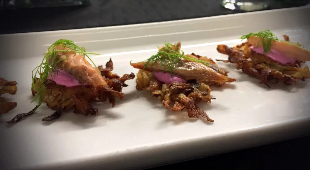 The first bite from your watershed: Smoked Trout on potato fritter.
