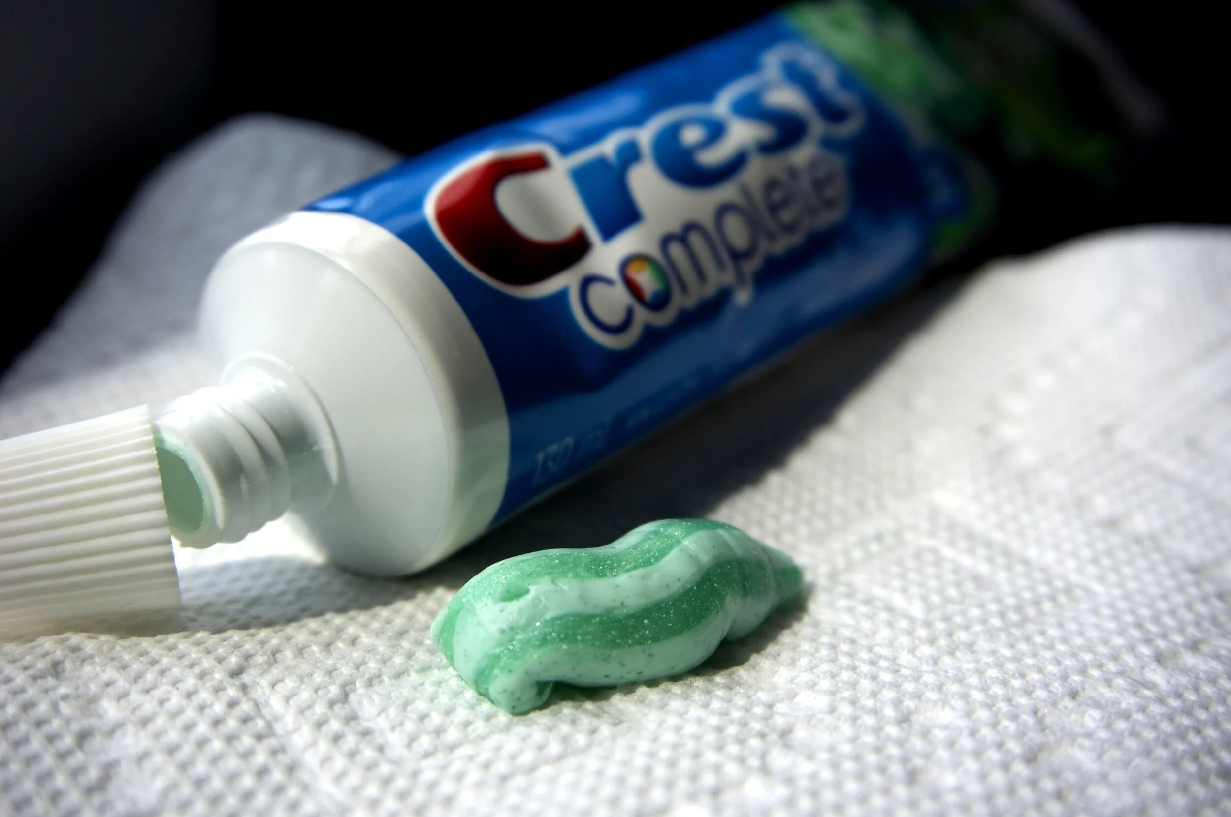 Tiny plastics unnecessarily added to personal care products such as soaps, facial cleansers, and as seen here, toothpaste. (Photo via Lake Ontario Waterkeeper)