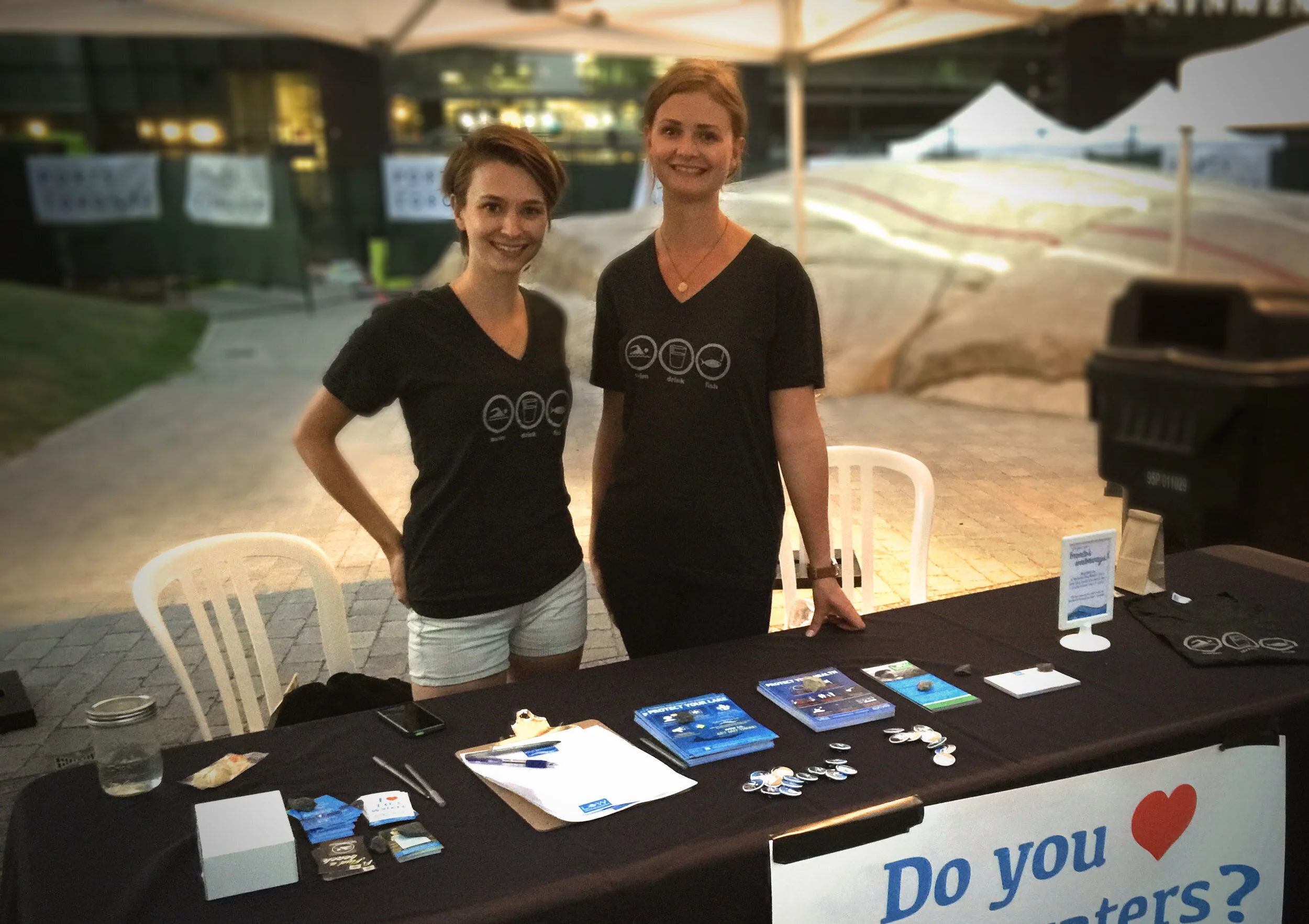 Swim. Drink. Fish. “The three circles,” as they are called around here, were drawn quite literally on a napkin in a bar more than a decade ago. The design was perfected by someone (Clara?) at a T-shirt company. The three circles next popped up on some shirts we sold on tour with The Tragically Hip back in the day. They’ve been around ever since, worn mostly by staff at public events, and snagged up with pride by people who know someone on the inside at Waterkeeper.