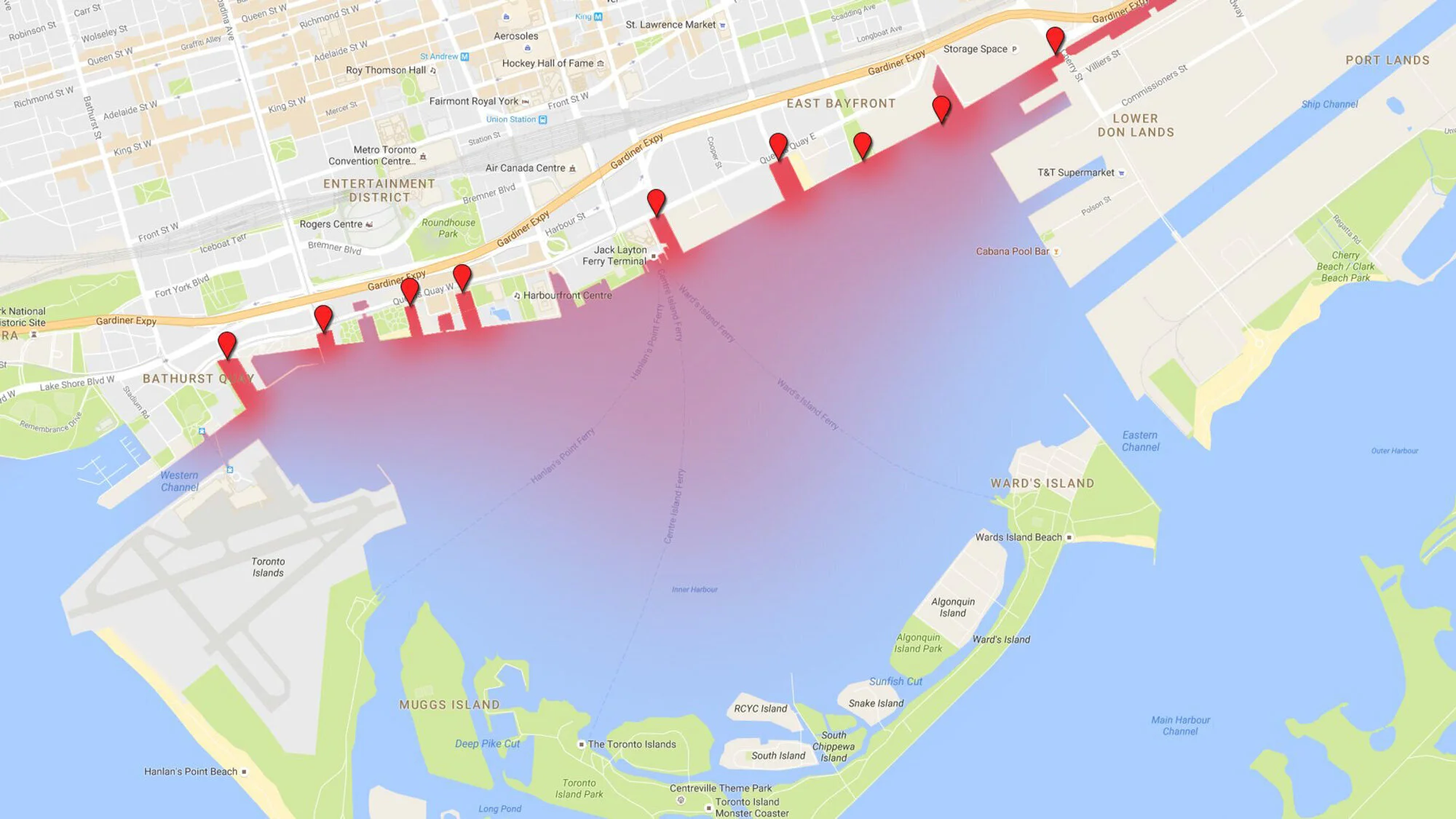 First thing’s first. We identified nine locations where sewage pollution enters Toronto Harbour, in addition to the Keating Channel where the Don River flows into the harbour.
