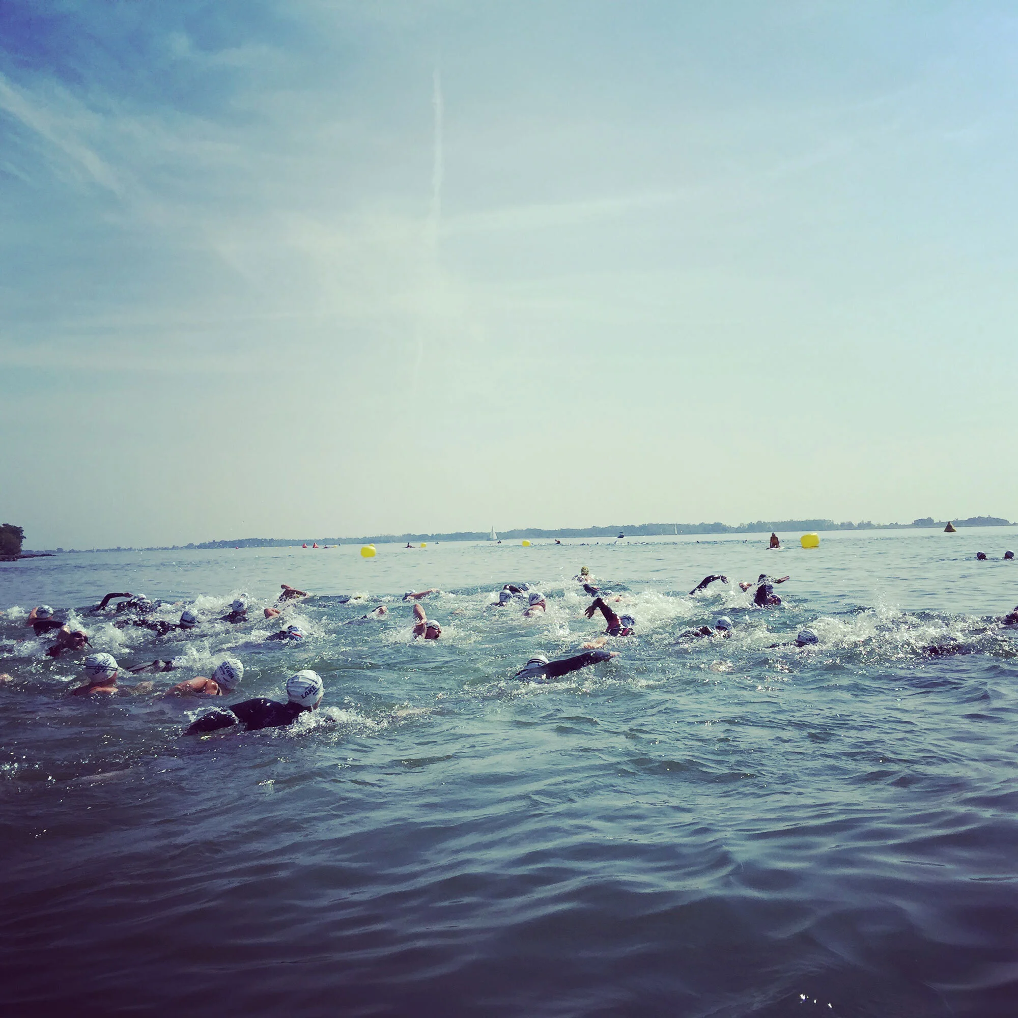 Swimmers from 2015 Toronto Island Lake Swim. (Photo via Lake Ontario Waterkeeper)