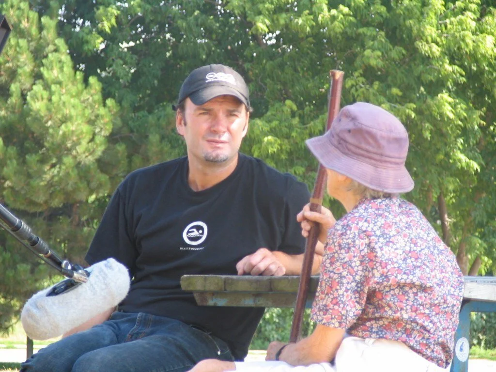 Mark Mattson and Pat Lawson discuss Port Hope's radioactive waste legacy during the making of a documentary in 2005. (Photo by Lake Ontario Waterkeeper)