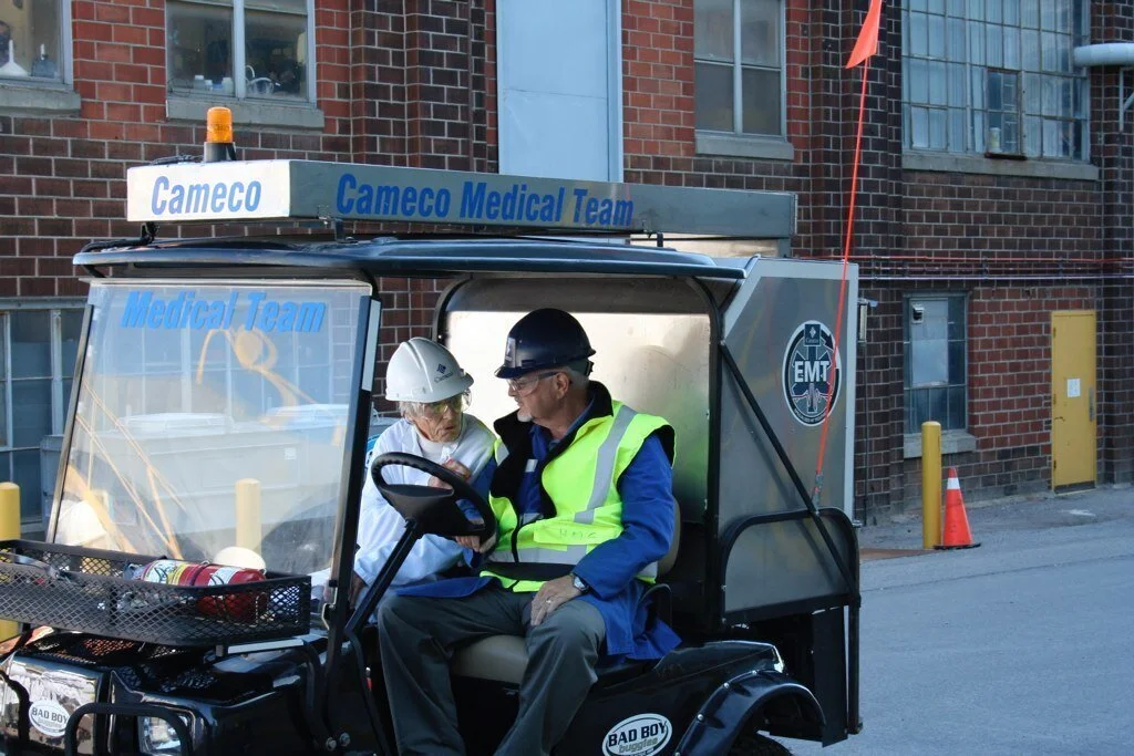Pat Lawson receives a tour of the Cameco fuel conversion facility in Port Hope, 2009.