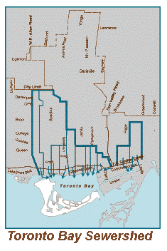 Map of Toronto's combined sewer overflows. (Image via Toronto Environmental Alliance, 2003)