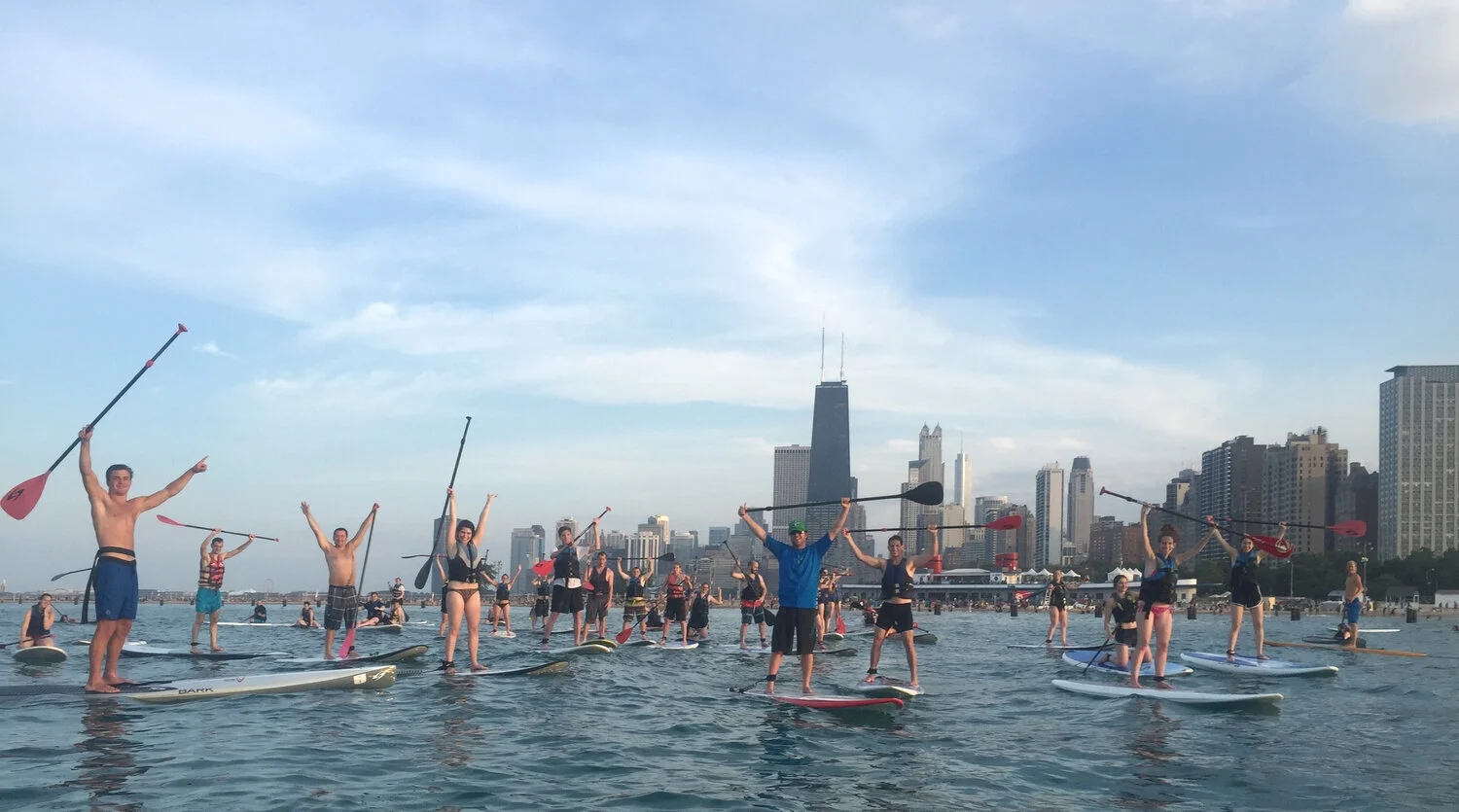 Paddlerboarders taking over Chicago's shoreline. (Photo via ChicagoSUP)