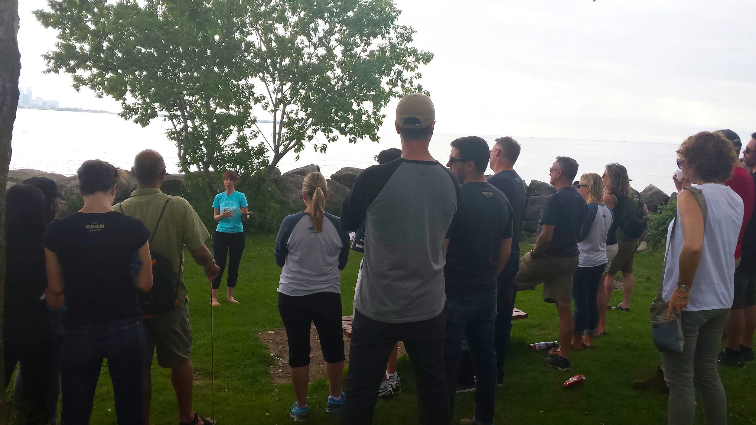 Krystyn Tully speaking prior to a shoreline cleanup and water sampling excursion at Humber Bay Park West.