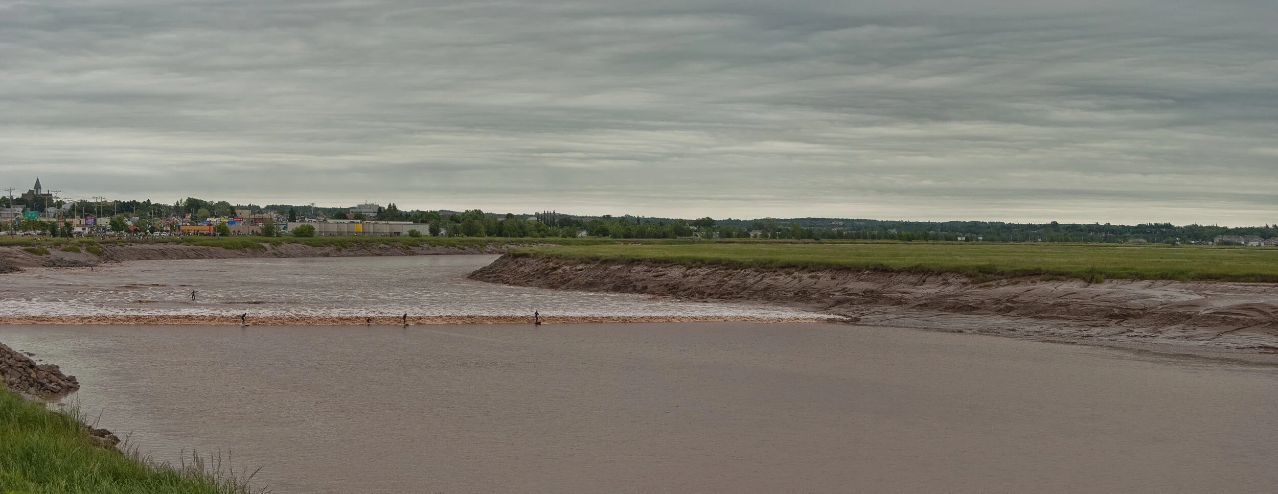 Surfers riding the tidal bore on the Petitcodiac River in July 2013, after removal of the causeway. (Photo credit: mrbango1138)