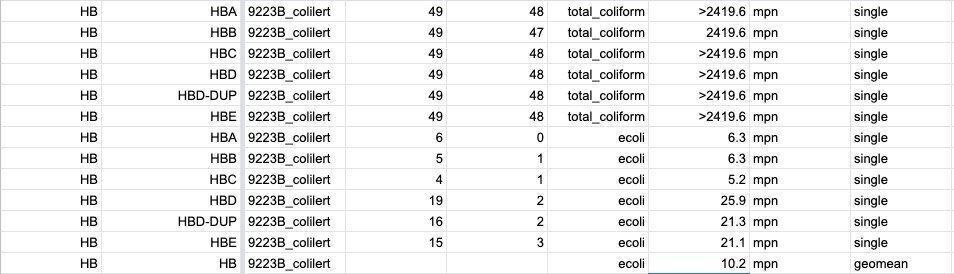 Here are the test results from Hospital Beach, for samples collected on August 12, 2020:
